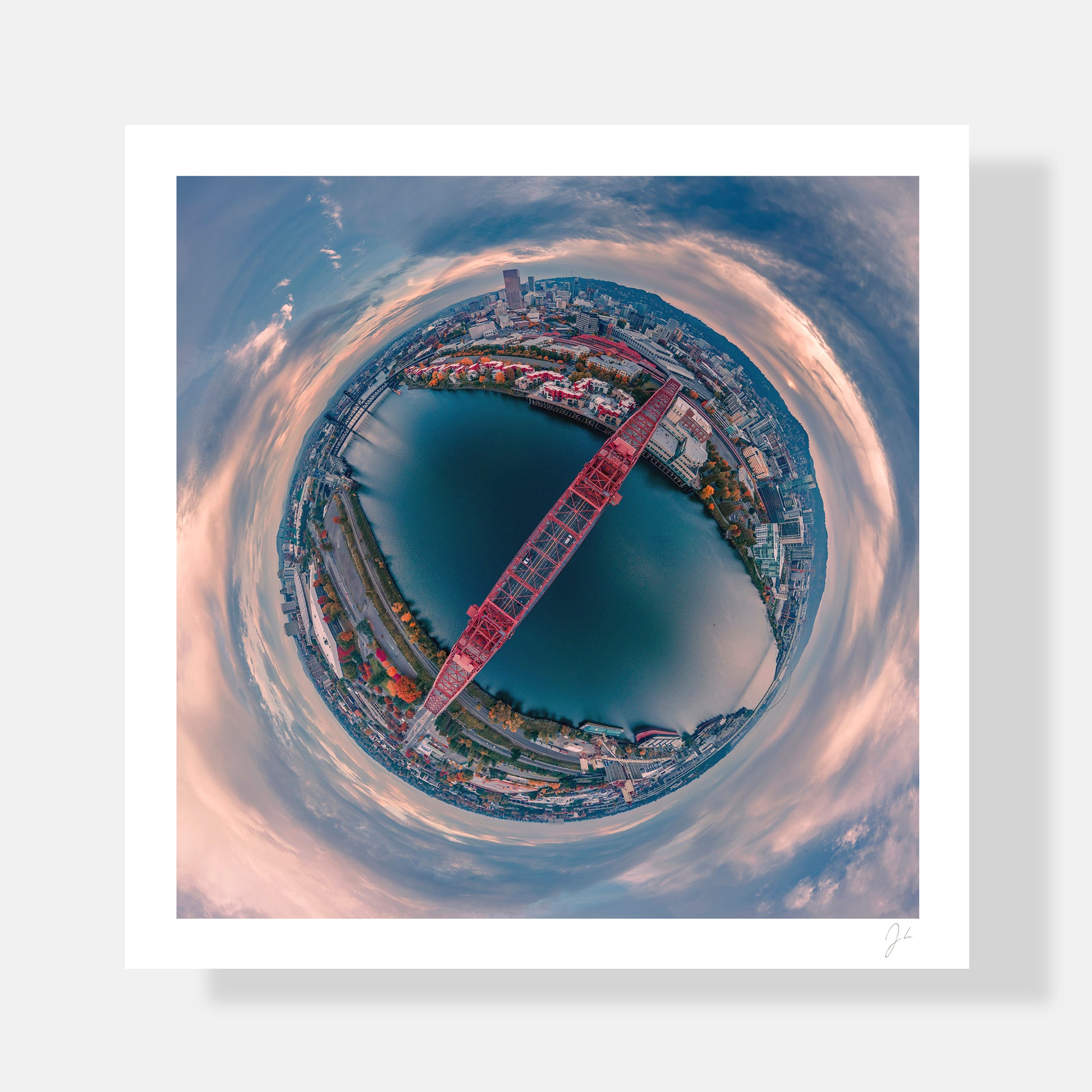 Perfect for brightening your home, office, or as a meaningful gift, this 360° print captures the bold architecture of Portland’s Broadway Bridge, offering an immersive view that places you right above the Willamette River in the heart of the Rose City.
