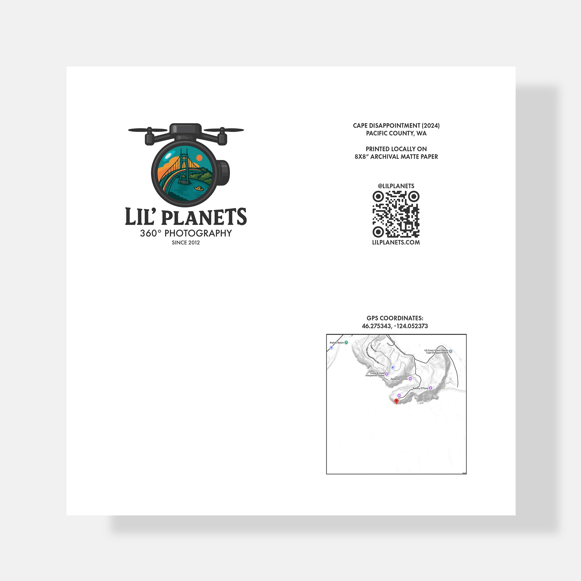 Perfect for brightening your home, office, or gifting to someone special, this 360° print captures Cape Disappointment in all its coastal drama, rugged cliffs, powerful waves, and the iconic lighthouse set against the sweeping Pacific horizon. A panoramic view that brings the wild beauty and energy of the Washington coast into any space.