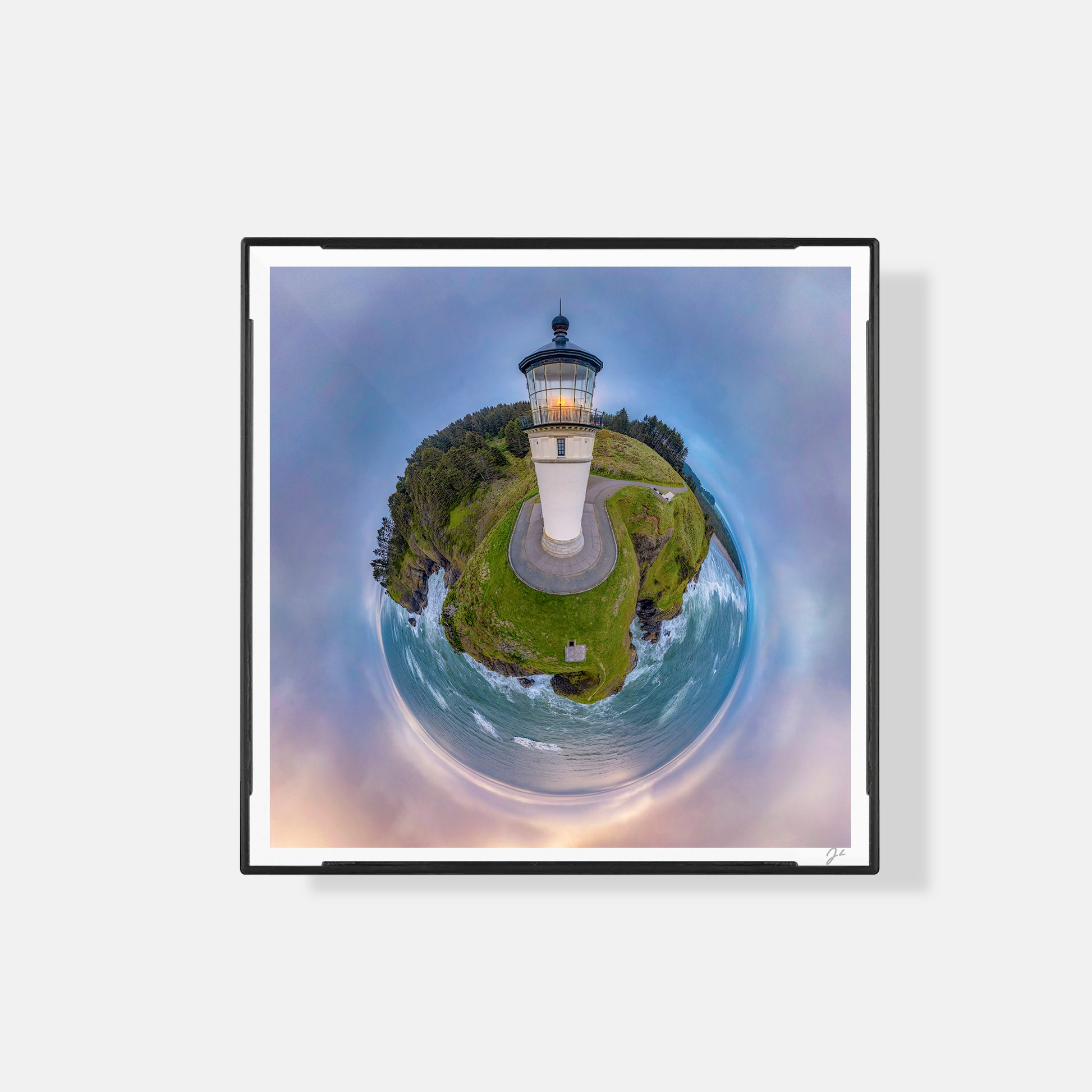 Perfect for brightening your home, office, or as a meaningful gift, this 360° print captures the rugged beauty of Cape Disappointment with its dramatic cliffs, crashing waves, and sweeping Pacific horizon — a breathtaking panoramic view of the Washington coast.