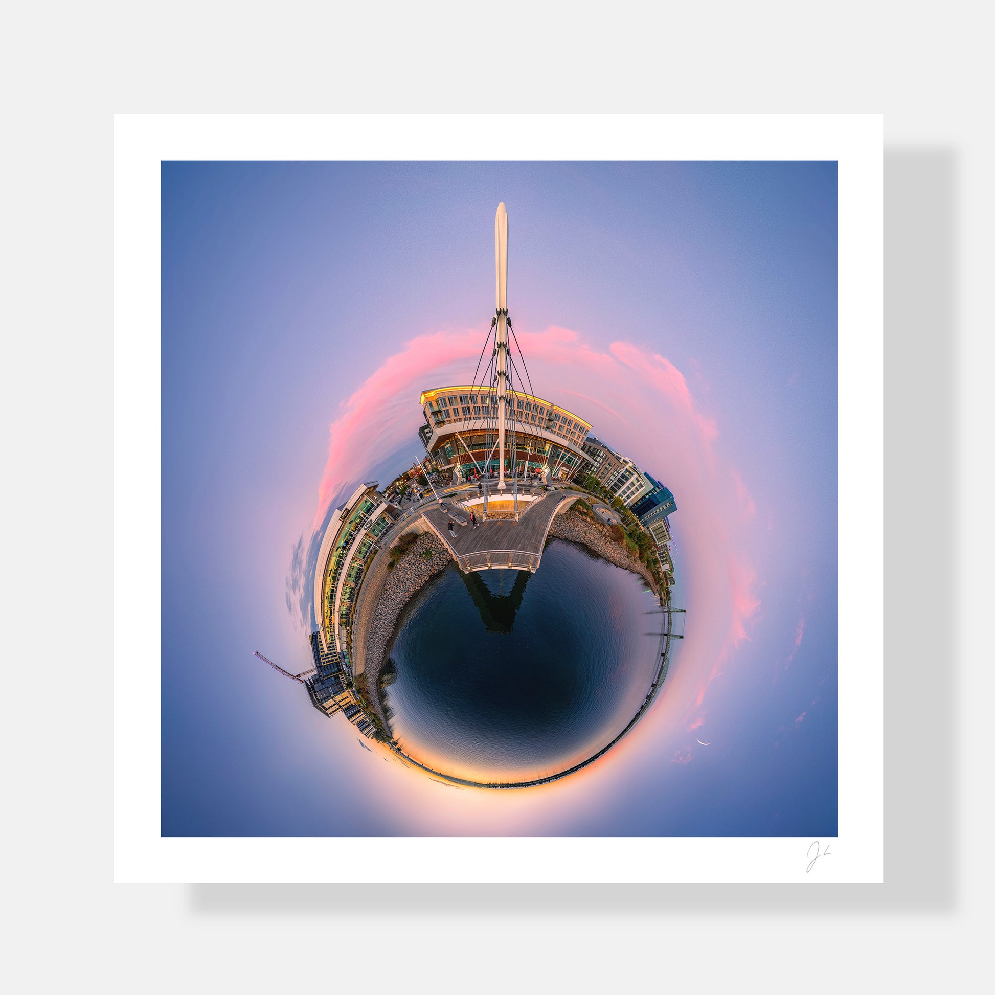 Perfect for brightening your home, office, or as a meaningful gift, this 360° print captures the modern elegance of Grant Street Pier at twilight, offering an immersive view that places you right above the Columbia River waterfront in the heart of Vancouver, Washington.