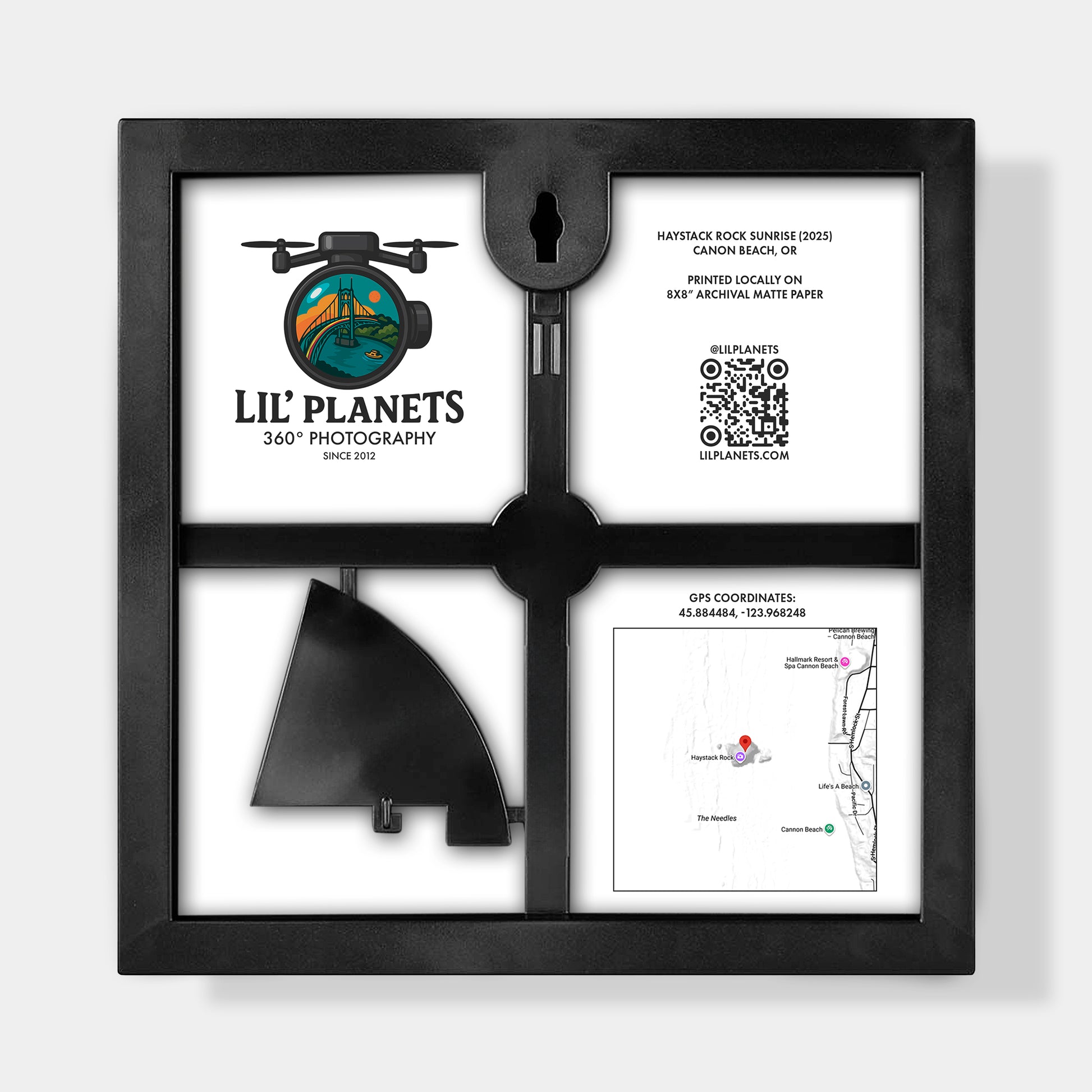 This limited-edition 360° print captures the coastal majesty of Haystack Rock at sun and moon rise, offering an immersive view that places you right at the edge of the Pacific as light and shadow meet along one of Oregon’s most iconic shorelines.