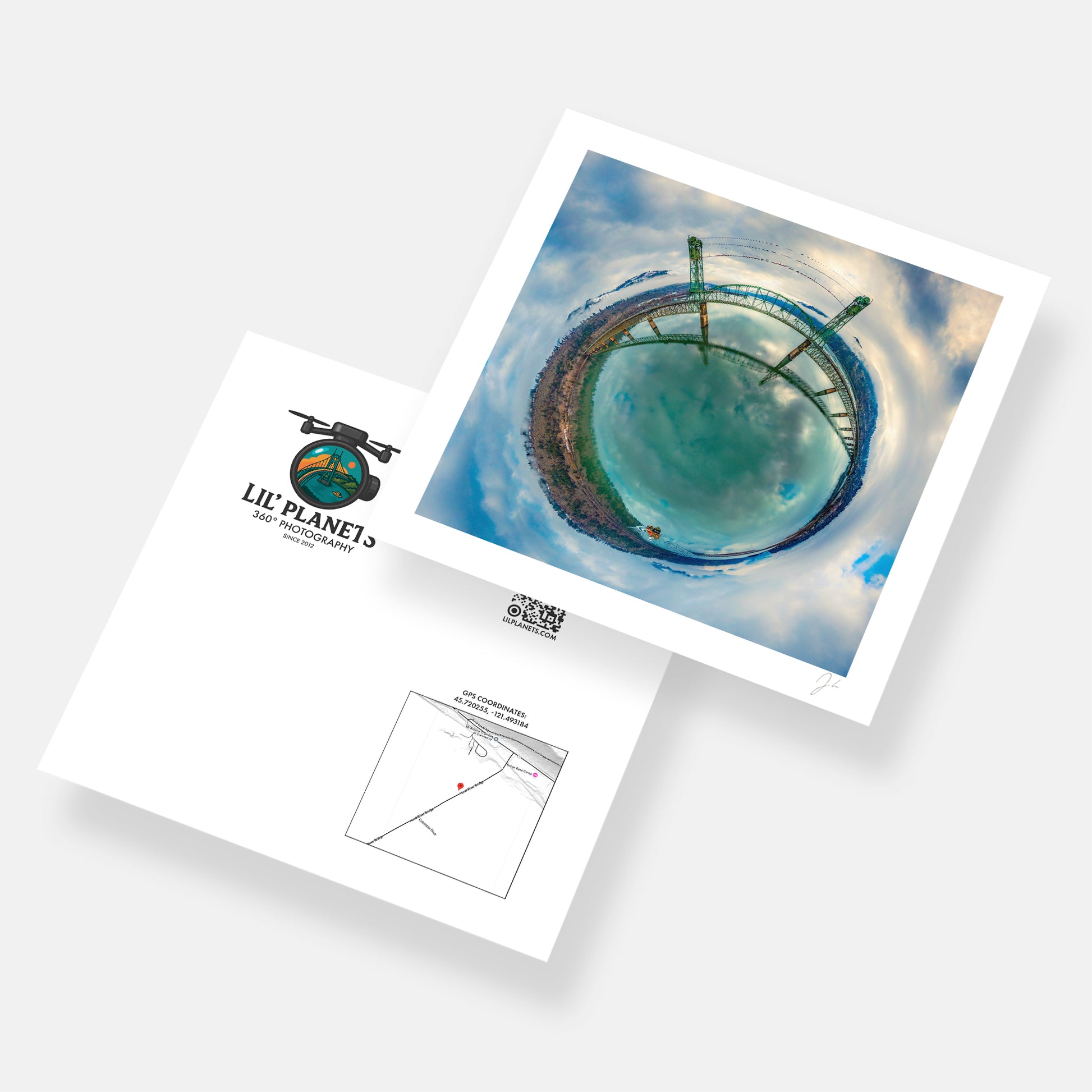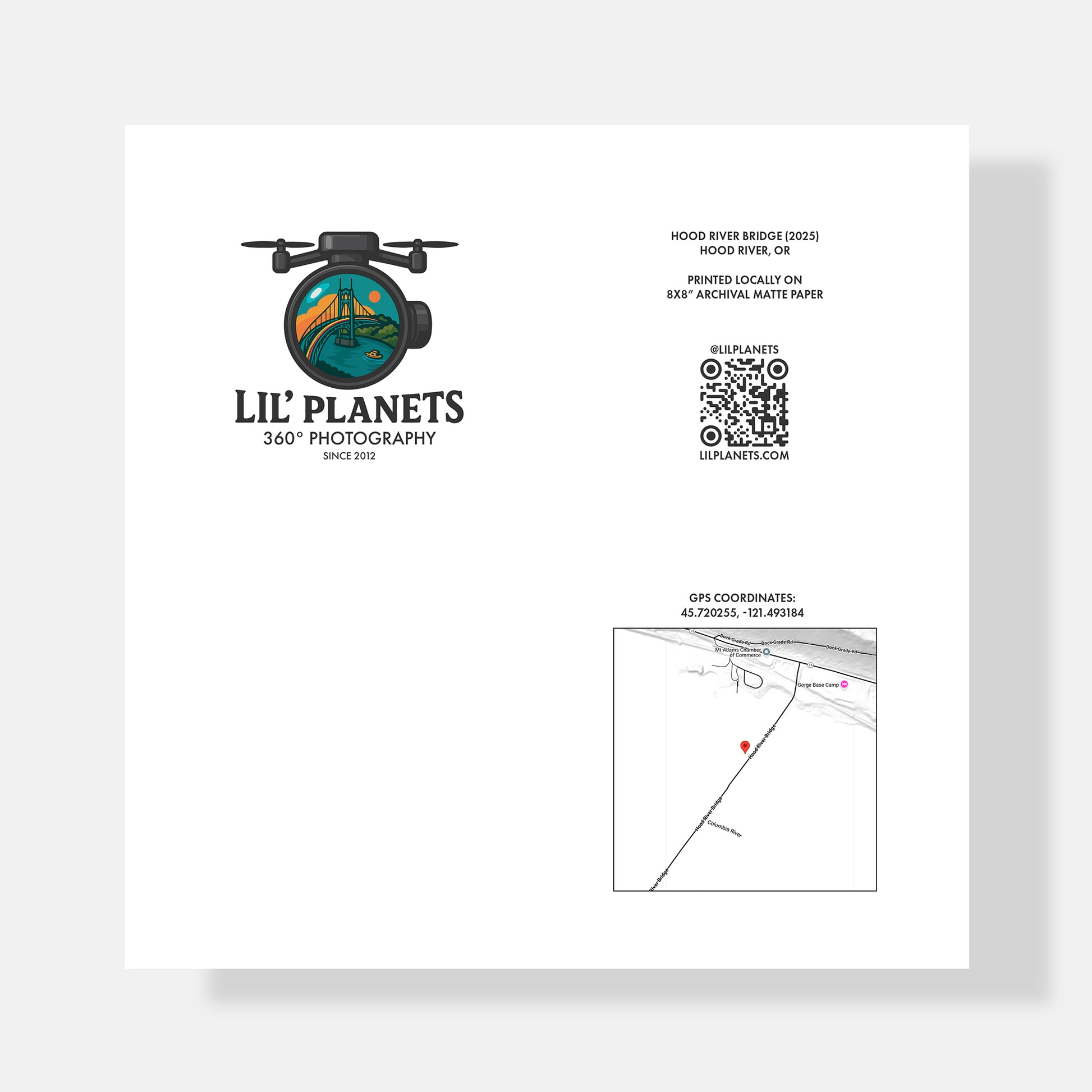 Perfect for brightening your home, office, or as a meaningful gift, this 360° print captures the sweeping span of the Hood River Bridge across the Columbia River, offering an immersive view that places you right between mountain peaks and river reflections in the heart of the Gorge.