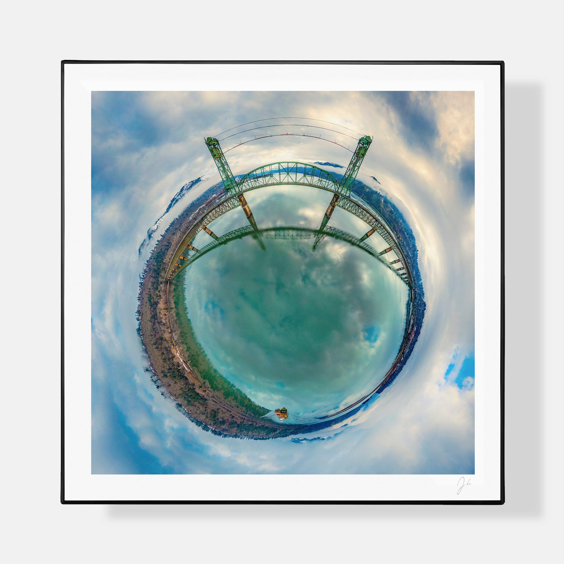 Perfect for brightening your home, office, or as a meaningful gift, this 360° print captures the sweeping span of the Hood River Bridge across the Columbia River, offering an immersive view that places you right between mountain peaks and river reflections in the heart of the Gorge.