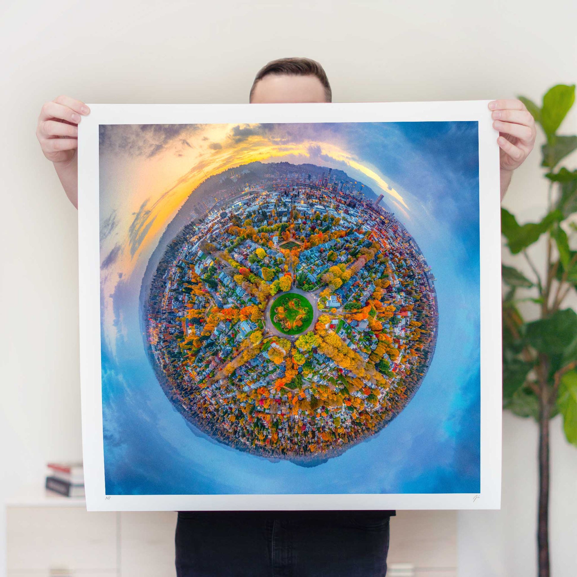 This limited edition 360° print captures the geometric beauty of Ladd’s Addition in full autumn color, offering an immersive view that places you right above one of Portland’s most historic and visually striking neighborhoods.