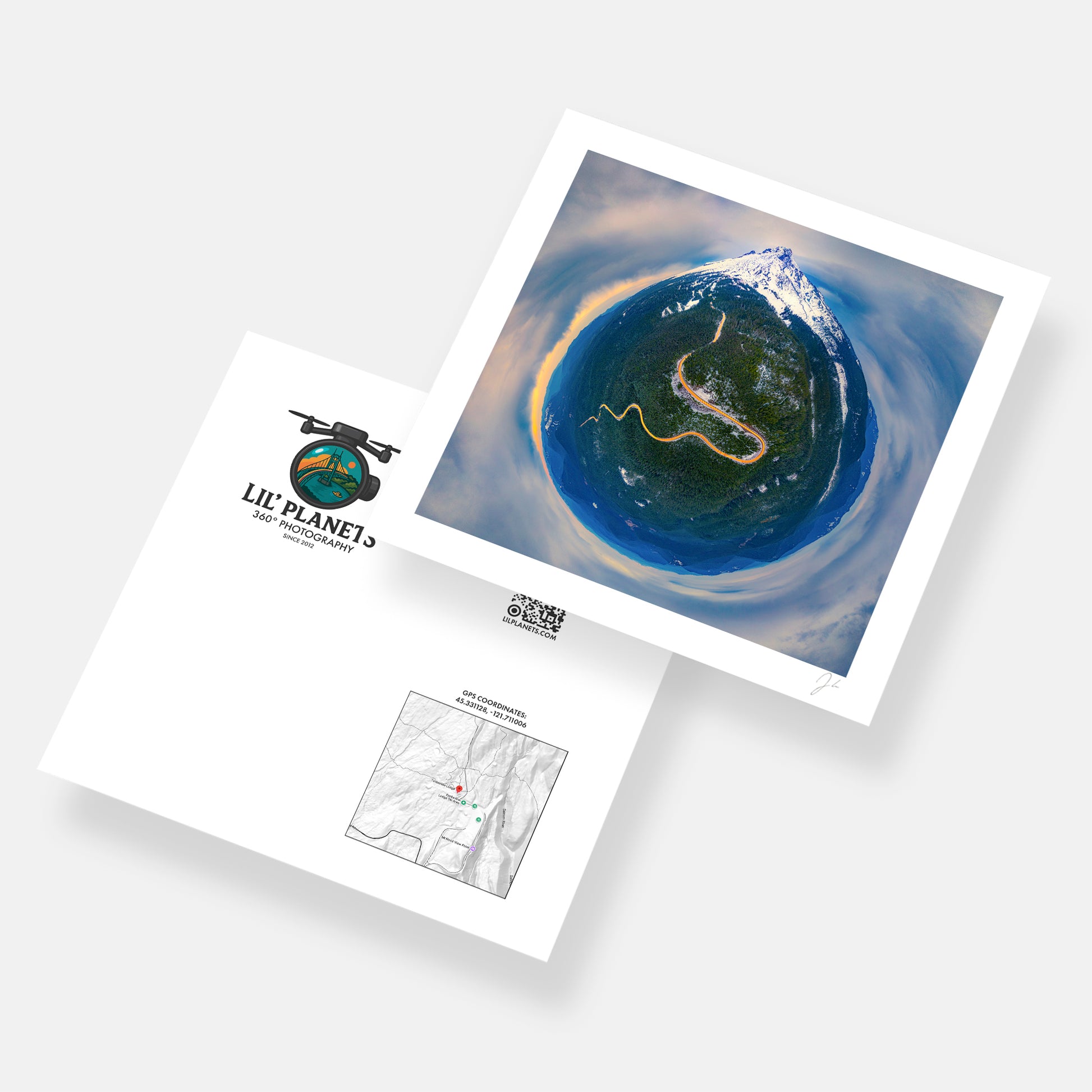 Perfect for brightening your home, office, or as a meaningful gift, this 360° print captures the winding approach to Mt. Hood through a forested alpine landscape, offering an immersive view that leads your eye up the curves of the road to Oregon’s most iconic peak.