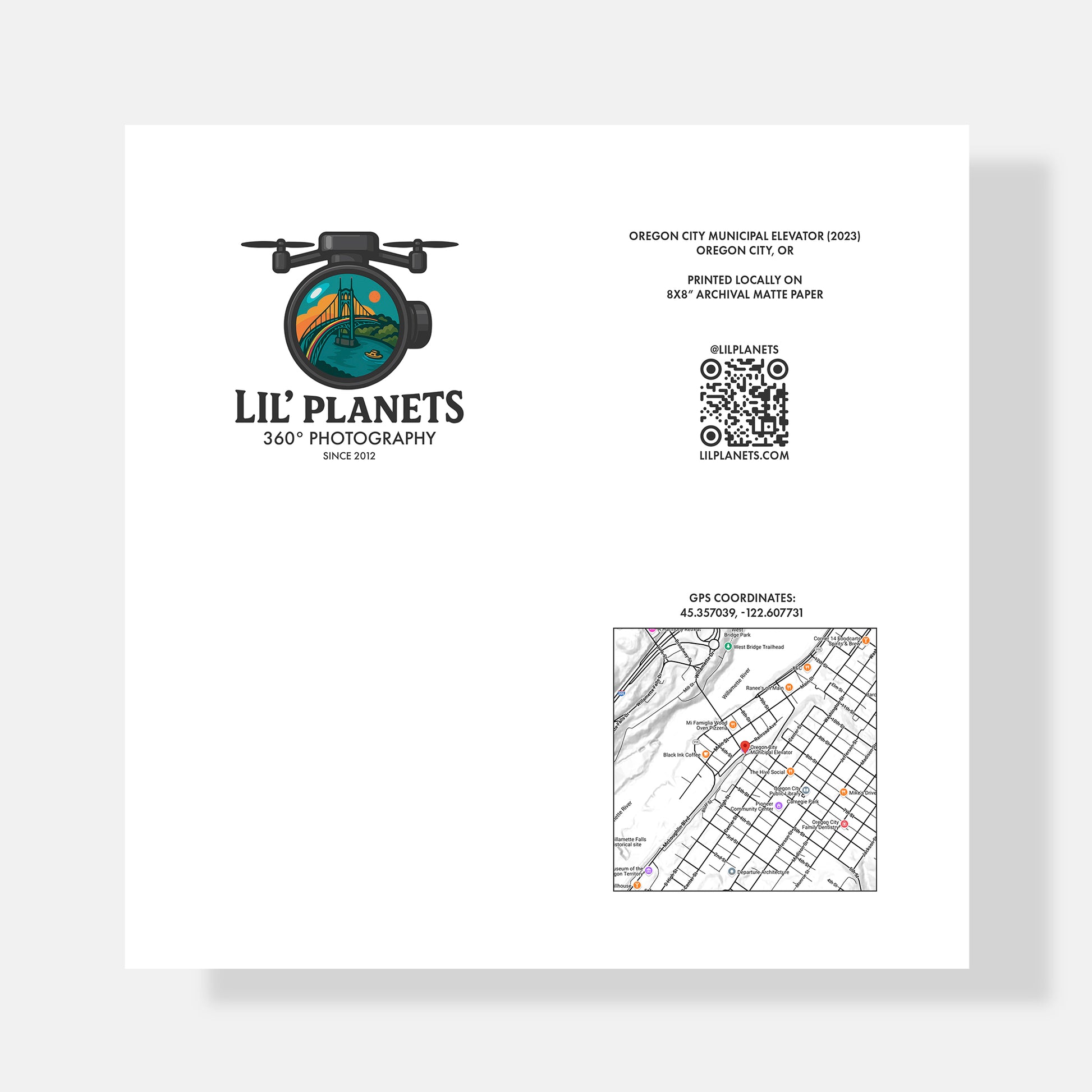 Perfect for brightening your home, office, or as a meaningful gift, this 360° print captures the futuristic form of the Oregon City Municipal Elevator at sunset, offering an immersive view that rises above historic downtown with panoramic charm.
