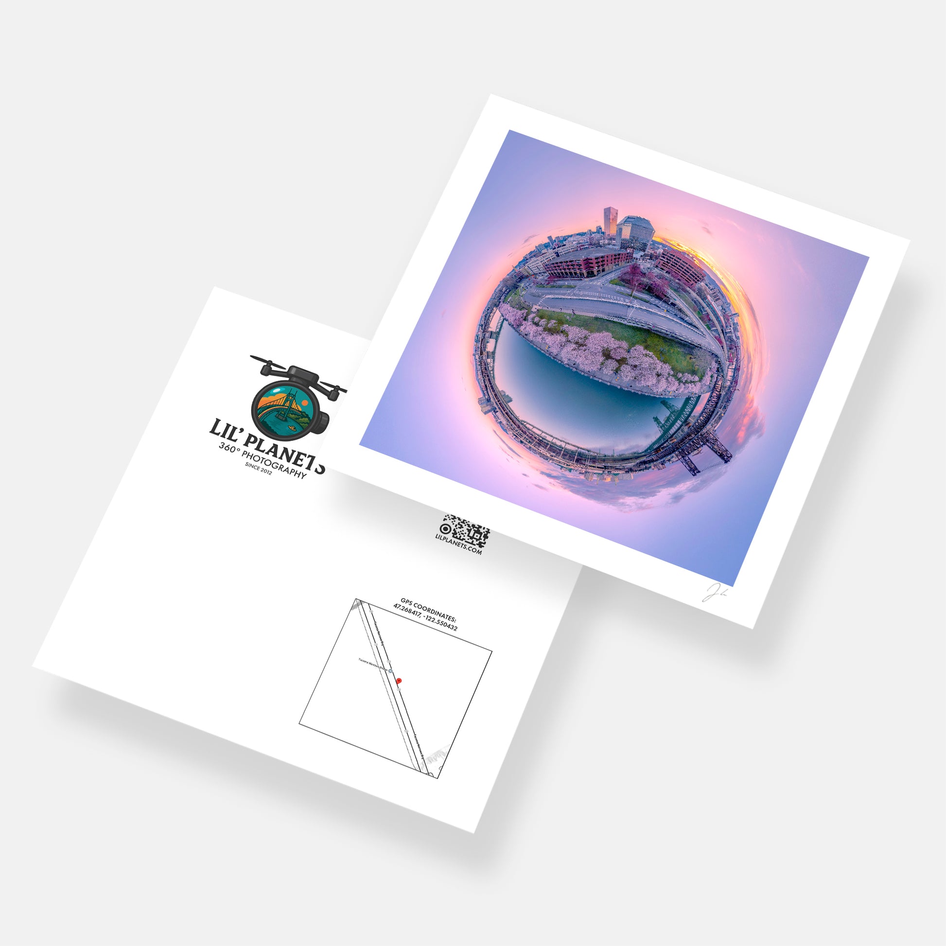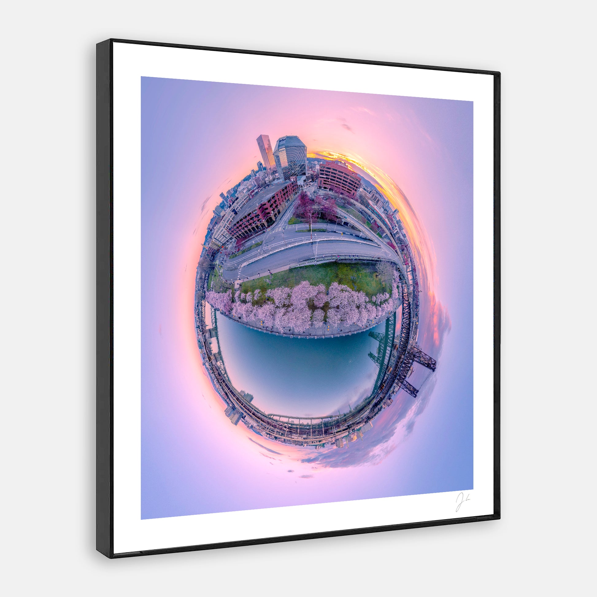 Perfect for brightening your home, office, or as a meaningful gift, this 360° print captures Portland’s Tom McCall Waterfront Park lined with blooming cherry blossoms at sunrise, offering a serene and colorful view of spring along the Willamette River.