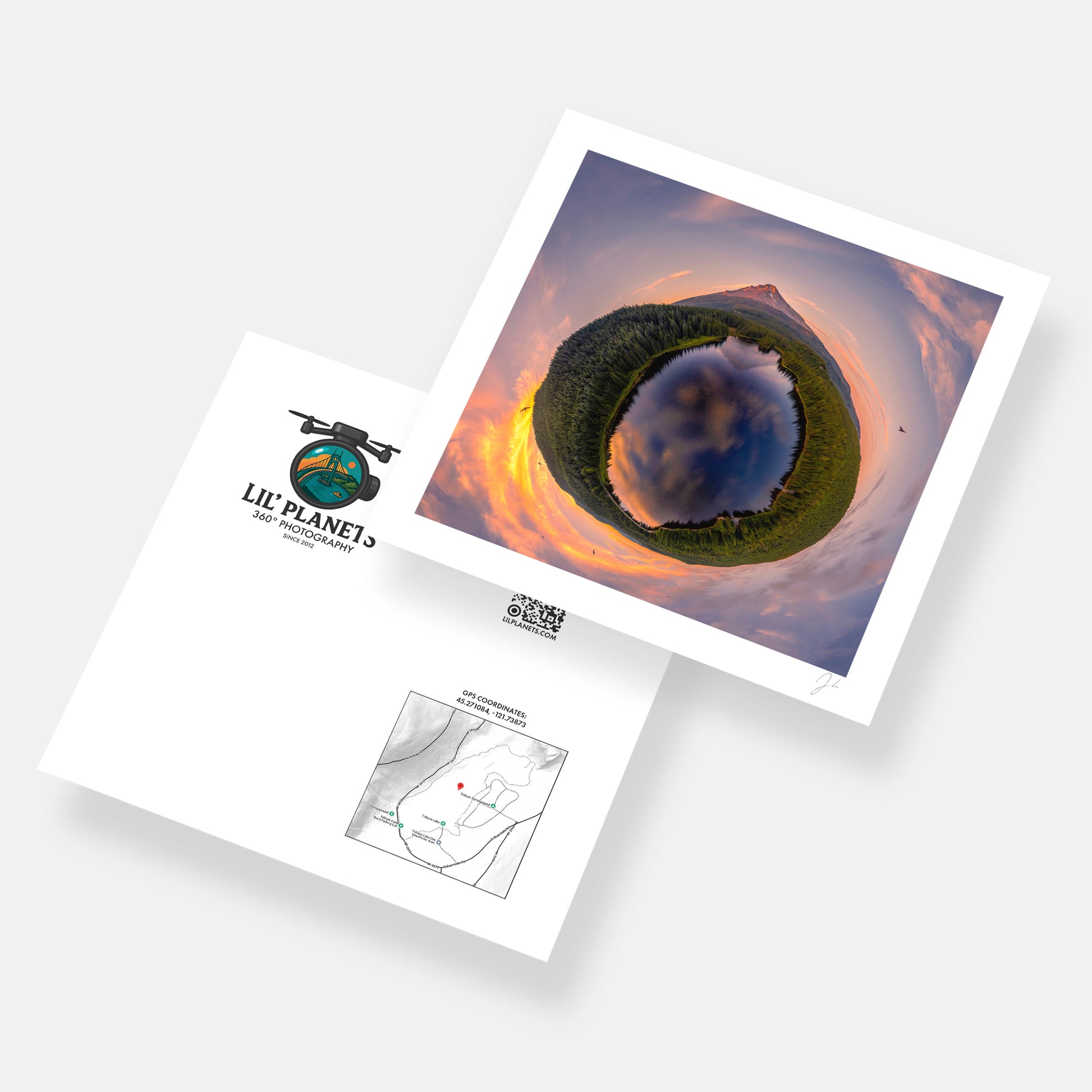 Perfect for brightening your home, office, or as a meaningful gift, this 360° print captures the serene beauty of Trillium Lake reflecting Mount Hood at sunset, with skies mirrored on the water and forested edges framing one of Oregon’s most iconic views.